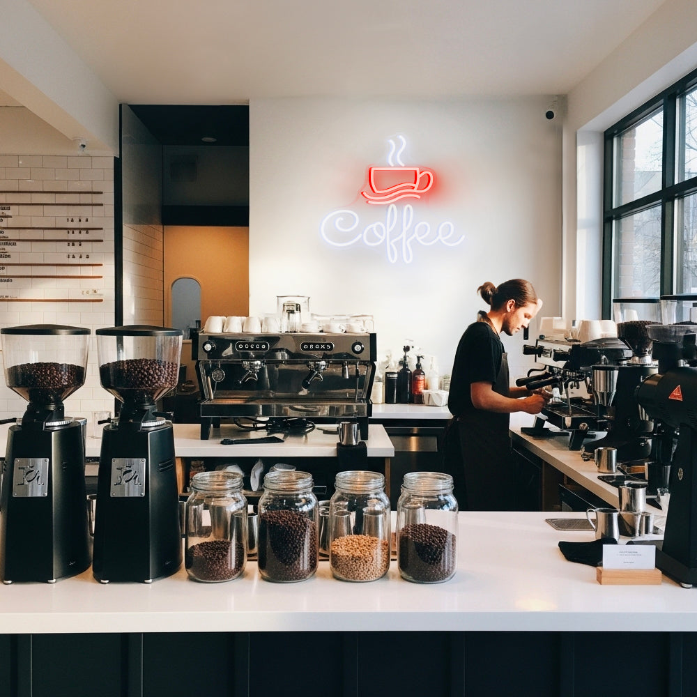 Multicolor Coffee & Cup LED Neon Sign – Perfect for Cafe, Kitchen & Home Bar